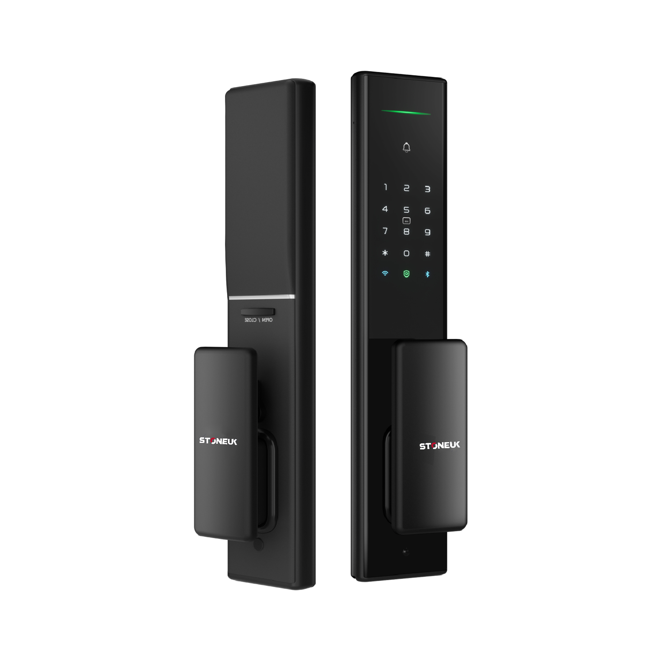 The ST-A5 is a premium all-in-one smart lock with AI fingerprint recognition, multiple access modes, and a patented fully automatic mortise, combining ultra-smooth security with a sleek aluminum and OLED glass design.